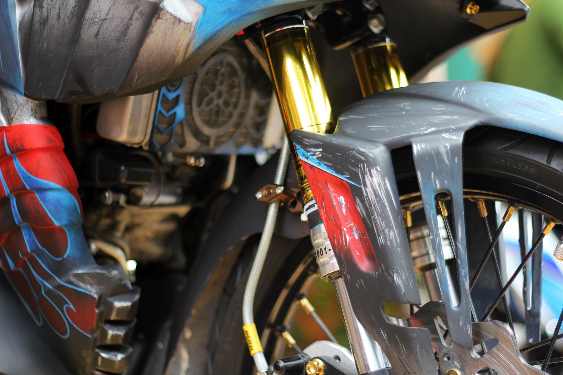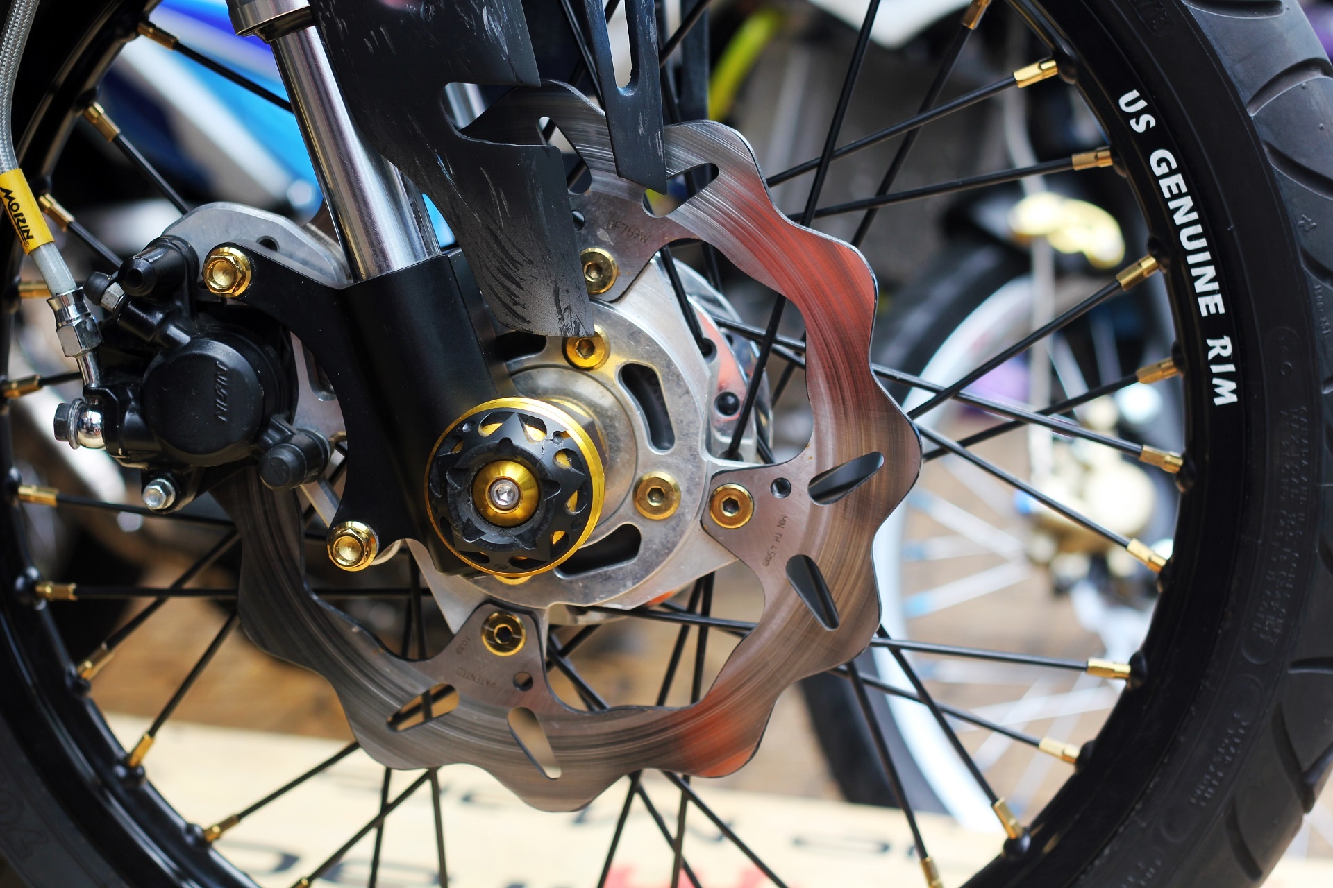 | Thắng đĩa trước dạng răng cưa, heo dầu Nissin được sơn đen. |