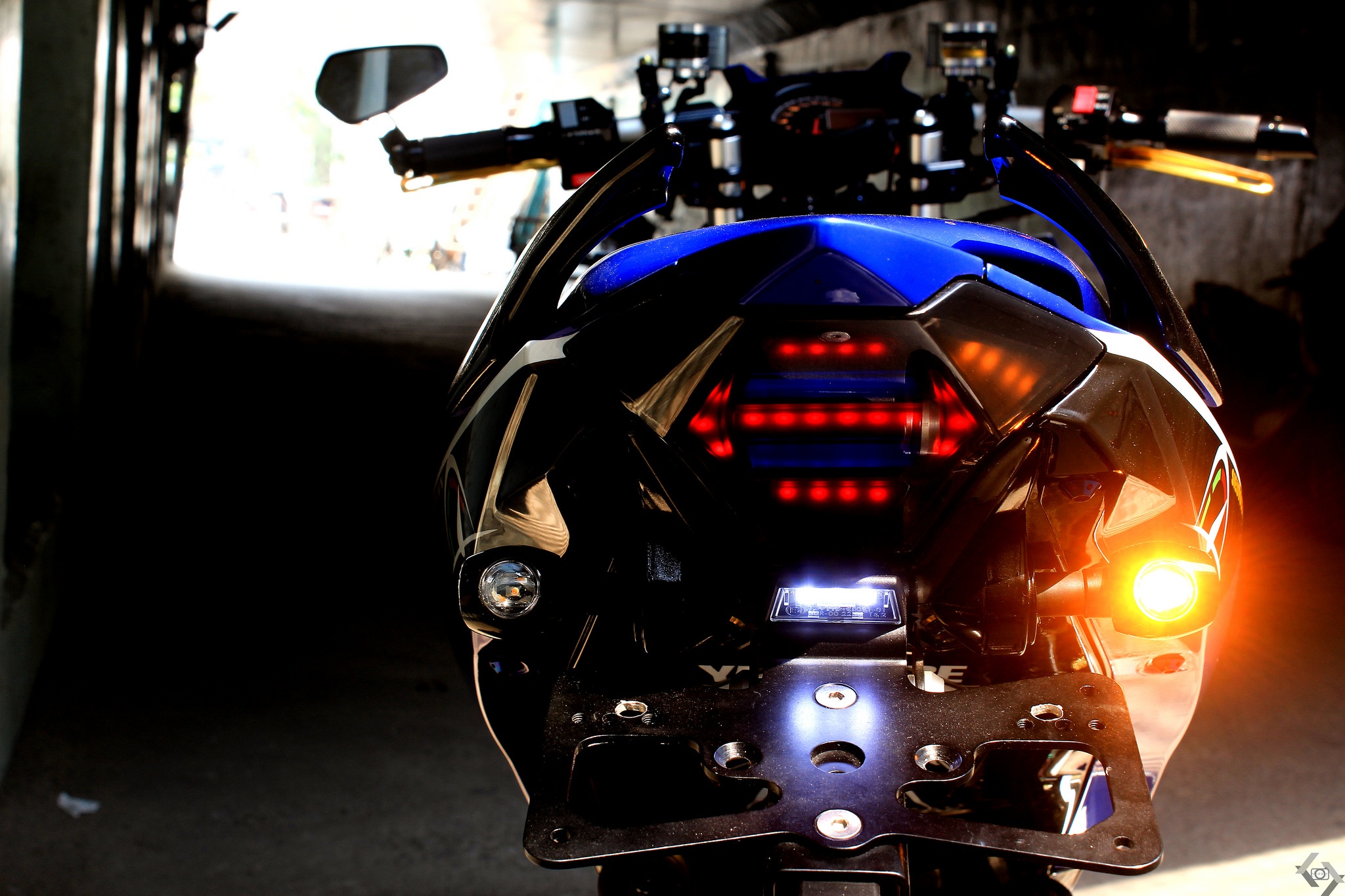 | Đầu xe thuôn gọn, khí động học giúp chiếc xe đạt tốc độ cao. Cụm đèn pha nguyên bản được tháo bỏ và thay bằng đèn LED siêu sáng. |