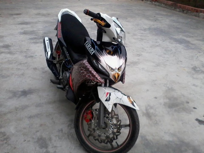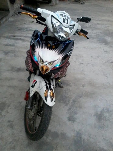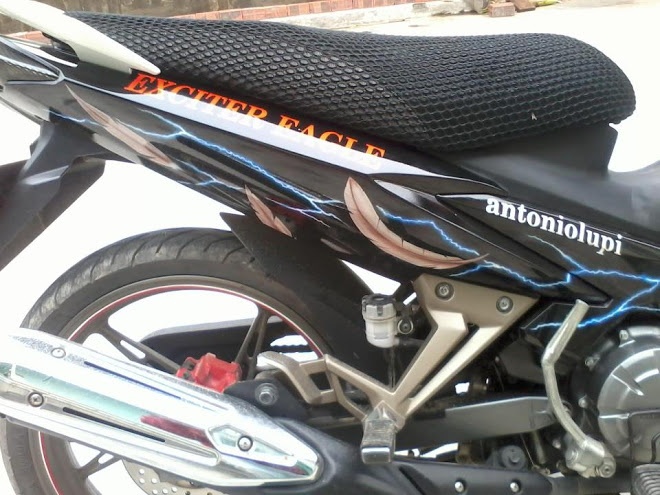 | Chiếc Exciter với tem hình đại bàng được chủ nhân của nó cũng là một người thợ từng nhiều năm học hỏi ở Sài Gòn, tự vẽ khi trở về quê nhà Hải Dương mở xưởng độ xe. |