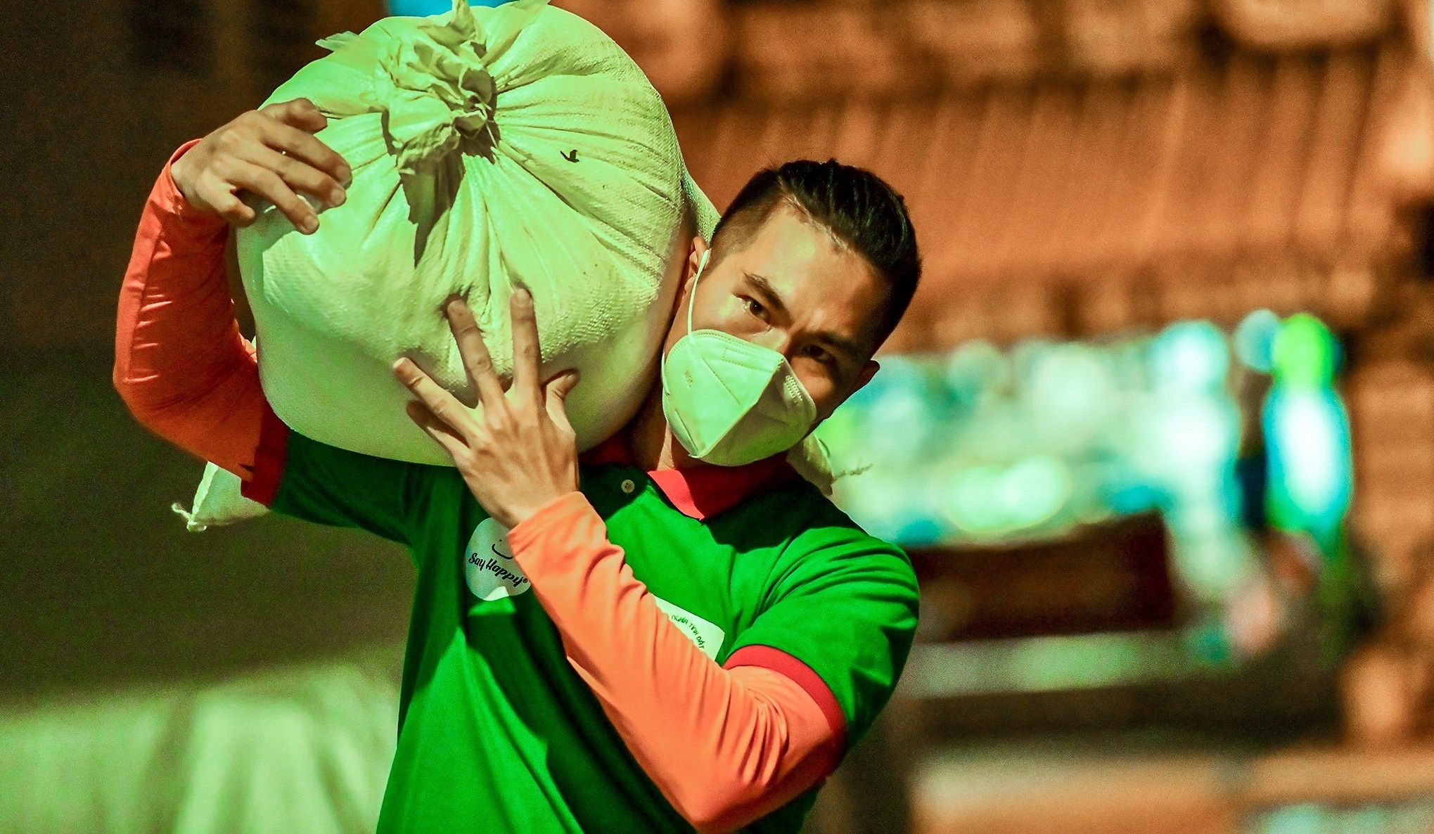 | Ba tháng trước, khi dịch bắt đầu bùng phát, anh làm đầu bếp nấu cơm từ thiện cho tuyến đầu và những khu cách ly, phong tỏa. Khi TP.HCM siết chặt giãn cách, nhu cầu hỗ trợ lương thực tăng cao, nhóm thiện nguyện của anh Tình chuyển qua trao tặng gạo, rau, nhu yếu phẩm cho người gặp khó trong dịch. |