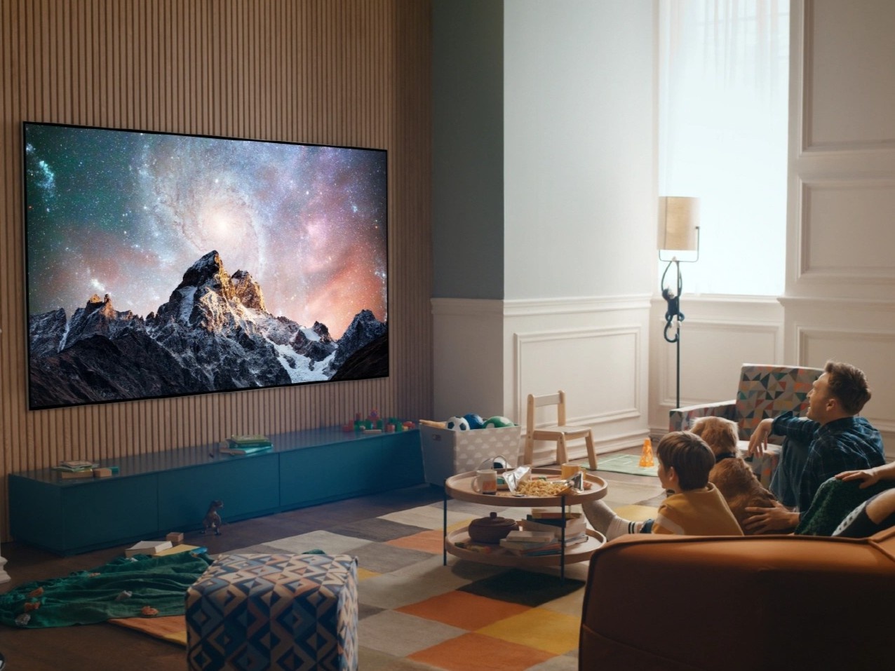 Bạn cũng có thể chọn 1 chiếc tivi làm điểm nhấn cho không gian. TV LG OLED khiến nhiều khách hàng hài lòng vì tính thẩm mỹ vượt trội. Một vài gợi ý như LG OLED evo (hay LG OLED G1) được thiết kế rất mỏng nhằm tối ưu cho việc treo tường. Độ mỏng và giá treo thông minh chìm vào phần thân cho phép tivi ôm sát hoàn toàn trên bức vách. Nhờ vậy, chiếc tivi trông giống như một tác phẩm nghệ thuật đẹp mắt, gia tăng tính thẩm mỹ và sang trọng của không gian.
