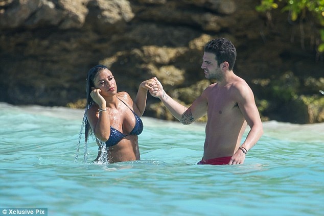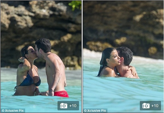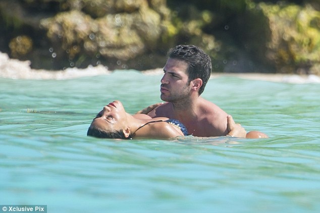 | Fabregas và Daniella vui đùa dưới nắng vàng biển xanh ở Saint Barthelemy, một hòn đảo thuộc nước Pháp ở Caribbean. |