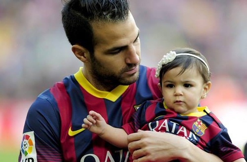 Bé Lia, 9 tháng tuổi là con gái đầu lòng của Fabregas và Daniella. Công chúa nhỏ nhà Fabregas mặc áo đấu, đầu đeo nơ siêu dễ thương ra sân cổ vũ bố thi đấu.