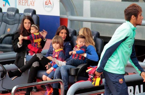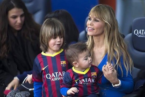 Siêu mẫu Yolanda Cardona cùng hai cậu con trai kháu khỉnh là Dylan và Kai tới để cổ vũ "người canh đền" của Barca.
