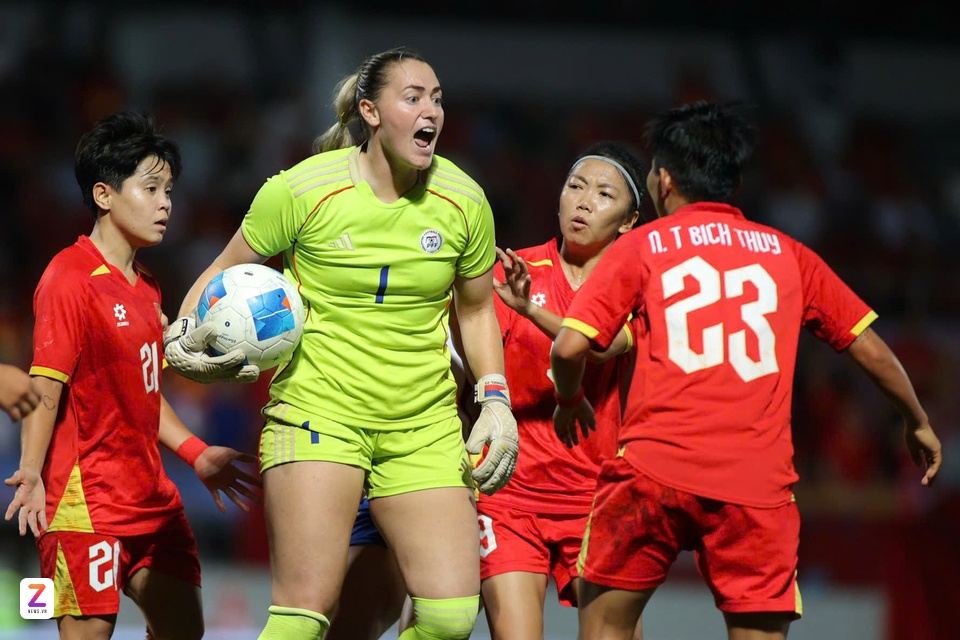 Tình huống này trùng khớp với diễn biến trận đấu. Trong thế trận mà tuyển nữ Việt Nam chủ động đẩy cao đội hình, kiểm soát bóng vượt trội và liên tục gây sức ép, khoảnh khắc bước ngoặt xuất hiện ở phút 29. Từ một tình huống tổ chức tấn công bên cánh, bóng được treo vào vòng cấm Philippines. Bích Thùy di chuyển thông minh, chọn điểm rơi chuẩn xác rồi đánh đầu dũng mãnh ở cự ly gần, đưa bóng găm thẳng vào lưới trong sự bất lực của thủ môn đối phương.