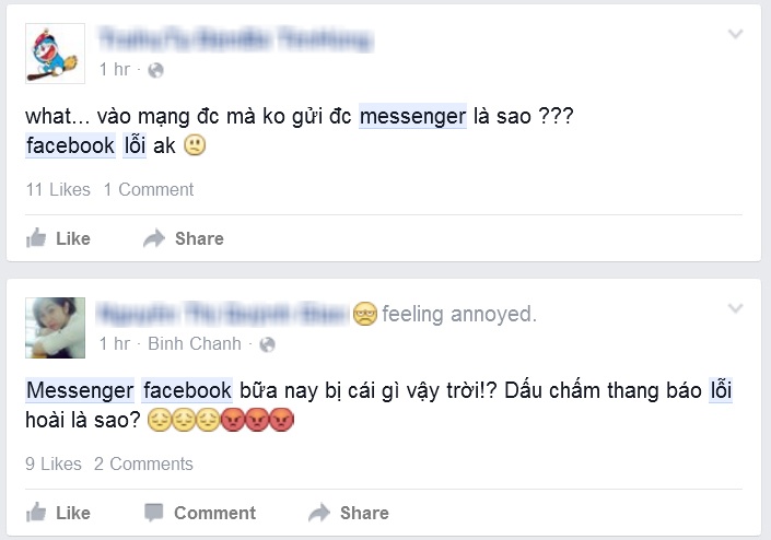 Những người dùng gặp lỗi cho biết, họ vẫn có thể đăng dòng trạng thái hoặc bình luận trên Facebook một cách bình thường, nhưng không thể gửi hoặc nhận tin nhắn qua Messenger.