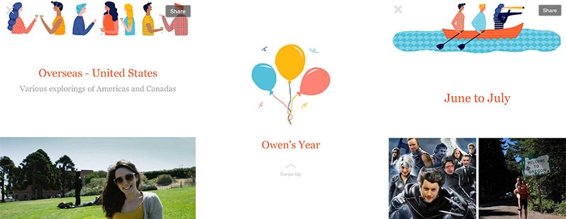 Sau khi chọn những sự kiện nổi bật của năm qua, người dùng có thể chia sẻ trên trang cá nhân. Người dùng có thể xem trên nền web hoặc trên ứng dụng di động. Tuy nhiên, trải nghiệm tốt hơn nếu như sử dụng trên các thiết bị di dộng. Ngoài ra, nếu tạo những khoảnh khắc của mình trên nền Web, bạn không thể tùy biến như mobile.