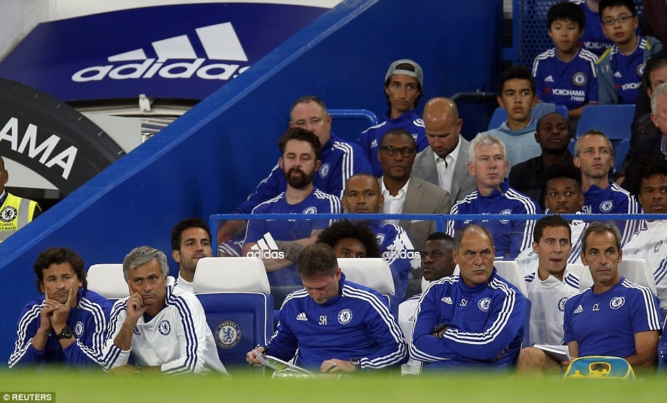 | Chứng kiến lối chơi bế tắc của Chelsea, huấn luyện viên Jose Mourinho tung những công thần như Hazard, Fabregas, Willian, Matic vào sân. |