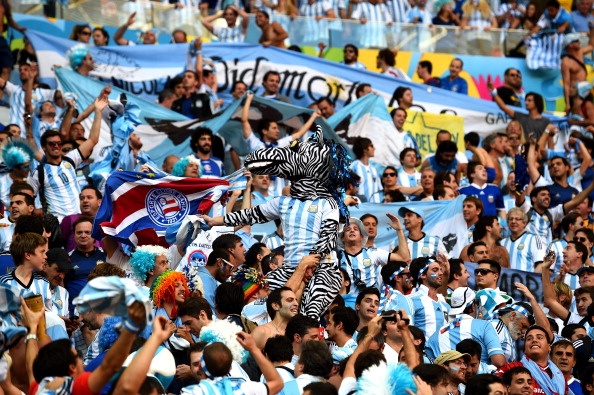 | Tại SVĐ Mane Garrincha (Brasilia), các CĐV của Argentina cũng hòa chung nhịp điệu chiến thắng. |