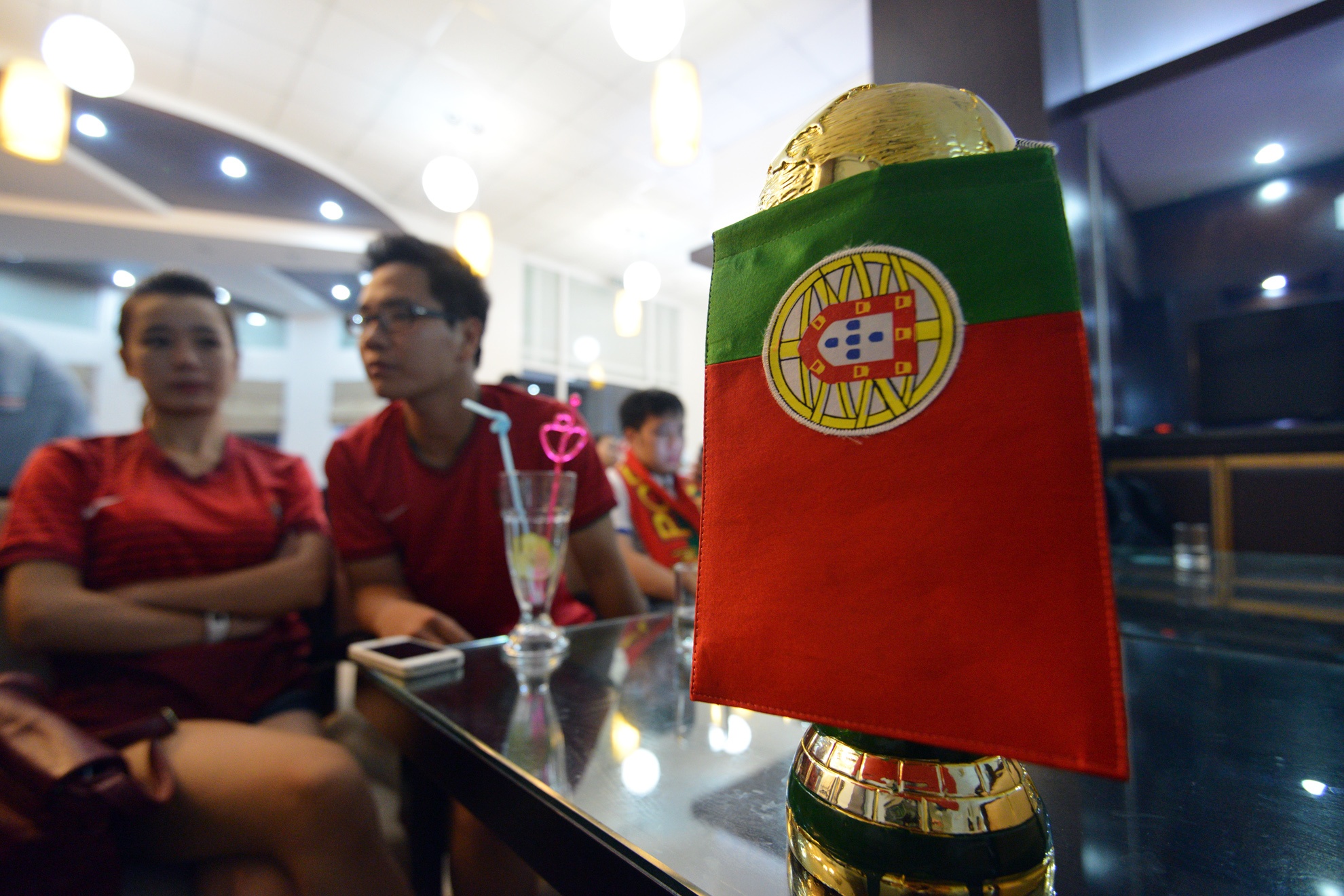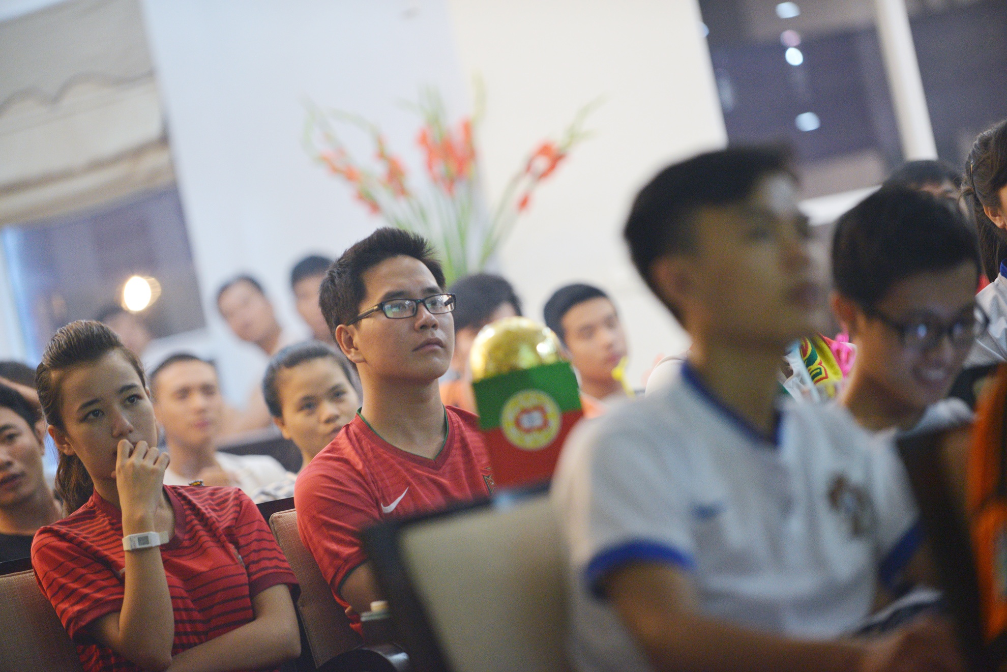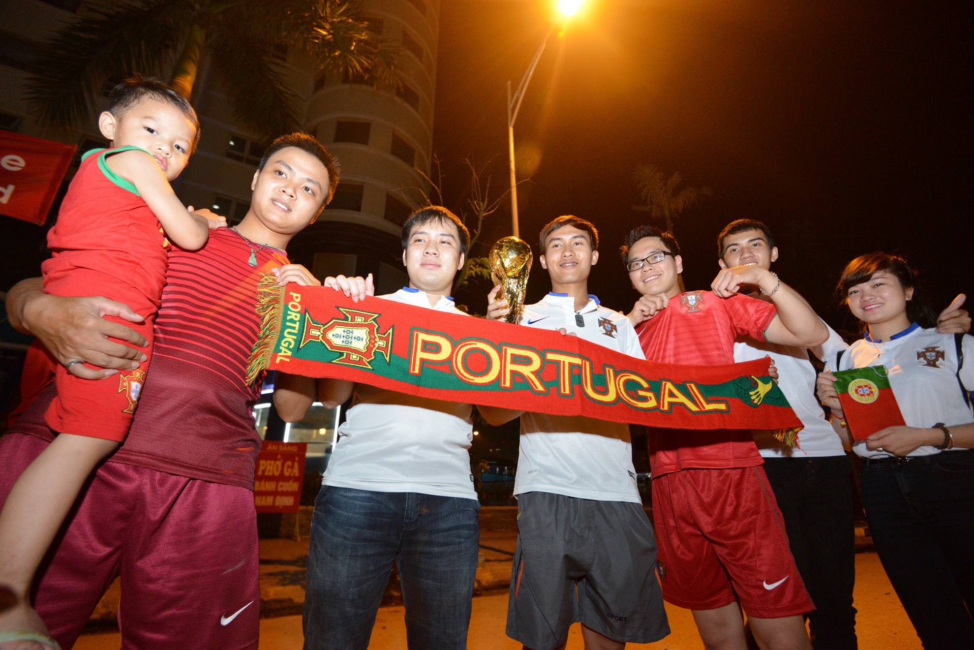 | Đông đảo các fan của Bồ Đào Nha có mặt tại quán cafe trên đường Hoàng Quốc Việt (Hà Nội) để cổ vũ cho đội bóng mình yêu thích. |