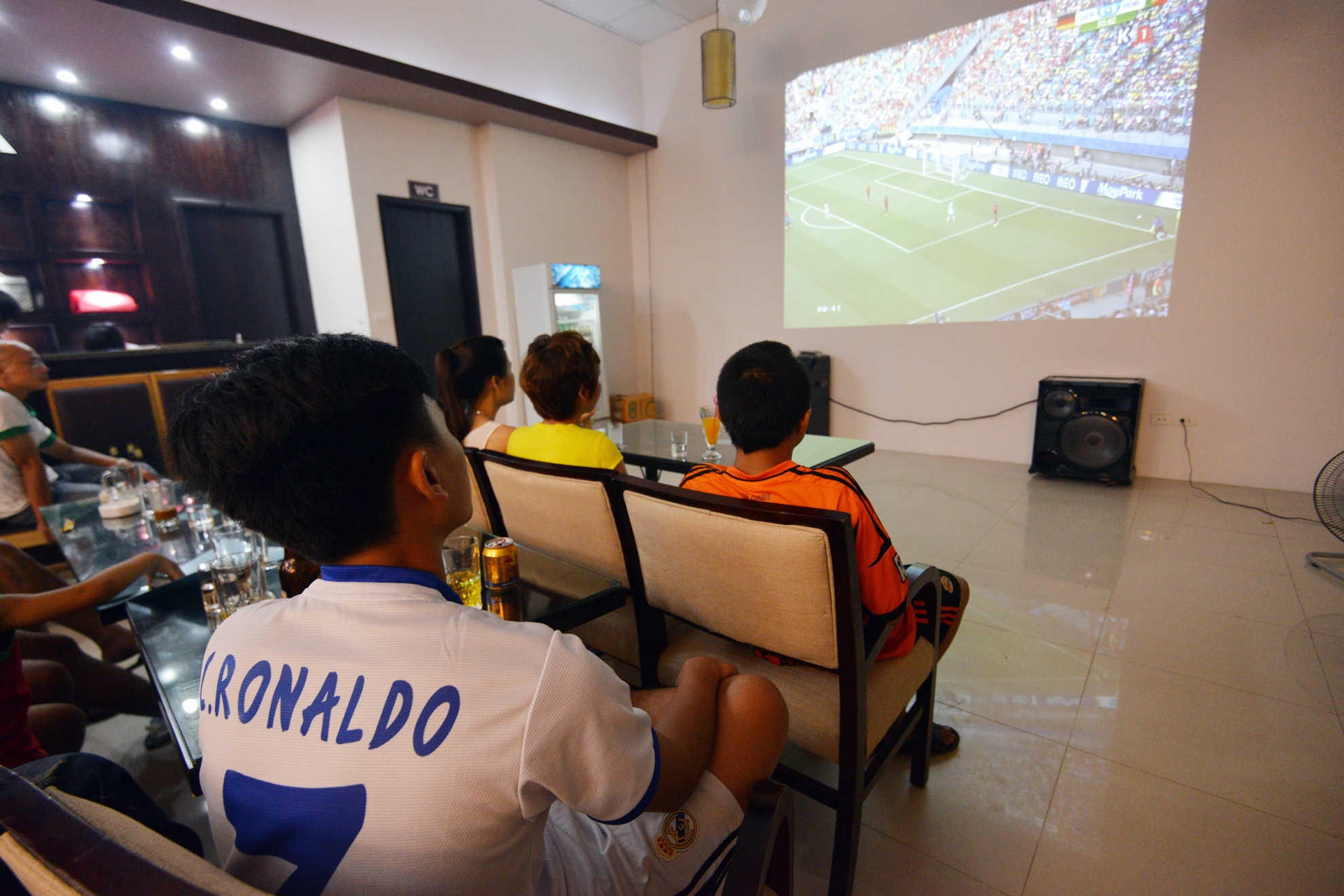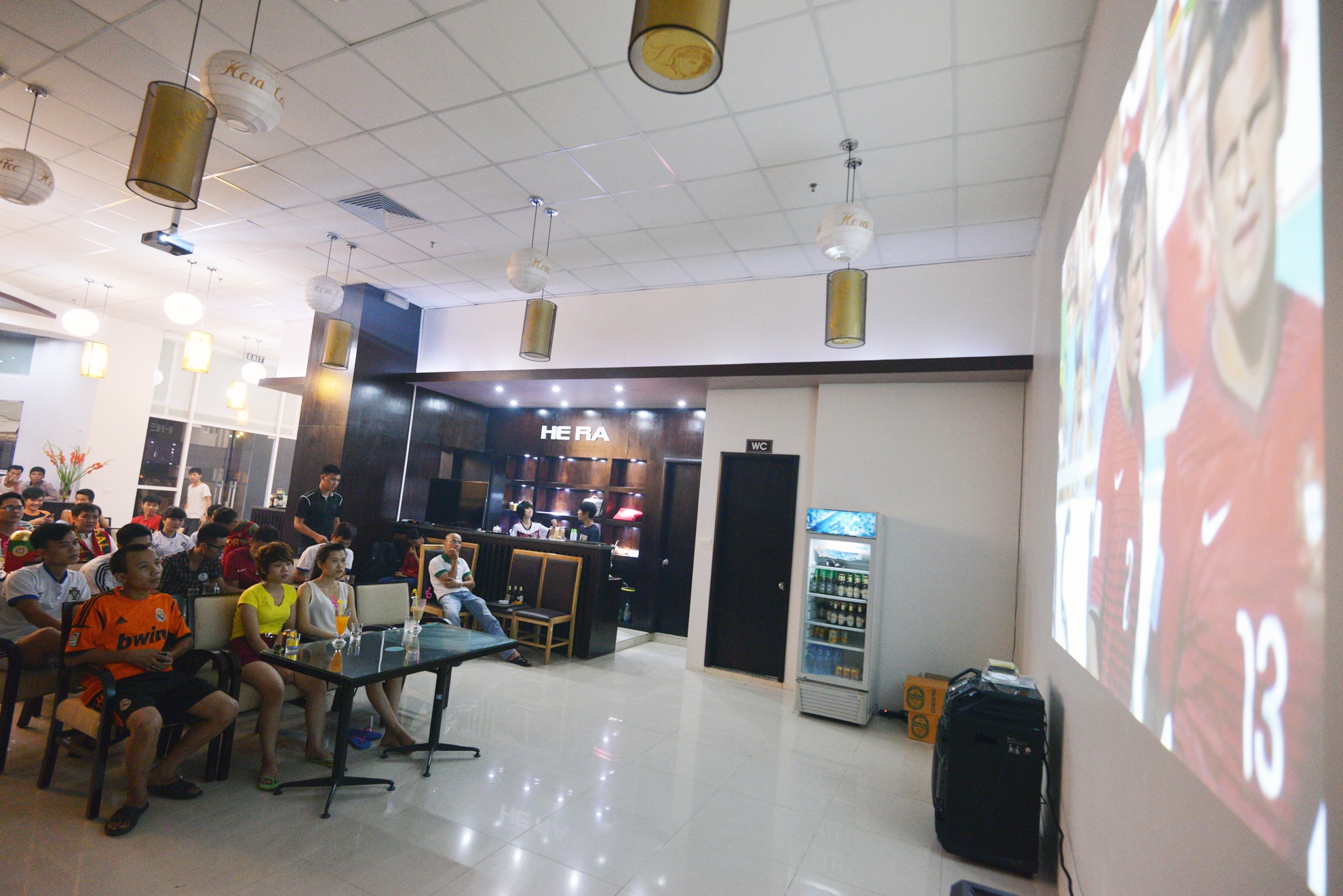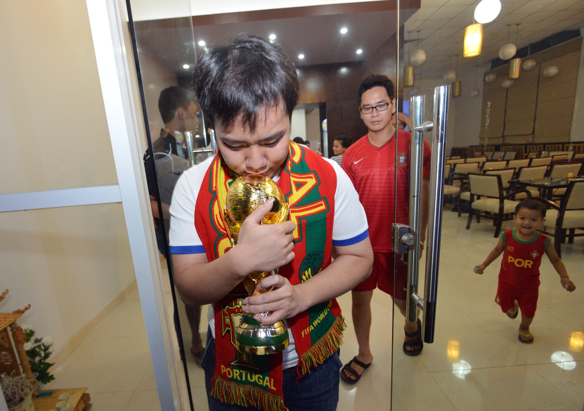 | Đông đảo các fan của Bồ Đào Nha có mặt tại quán cafe trên đường Hoàng Quốc Việt (Hà Nội) để cổ vũ cho đội bóng mình yêu thích. |