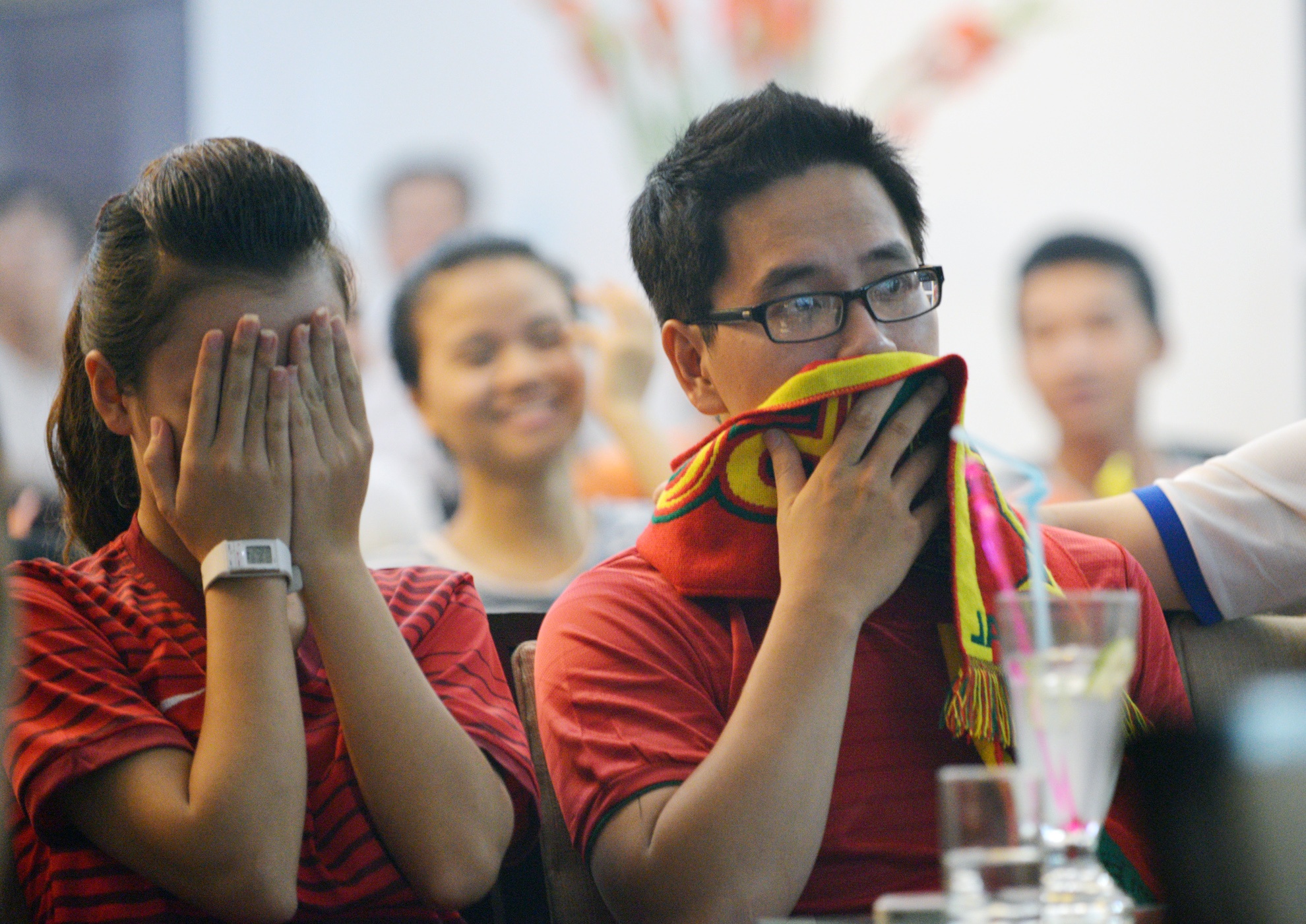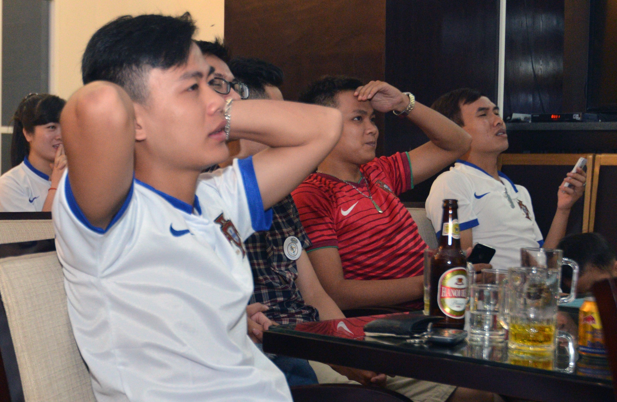 | Phan Nguyễn Vân là fan ruột của Bồ Đào Nha, cô tỏ ra khá buồn khi đội tuyển mình yêu thích liên tục bị dẫn trước. |