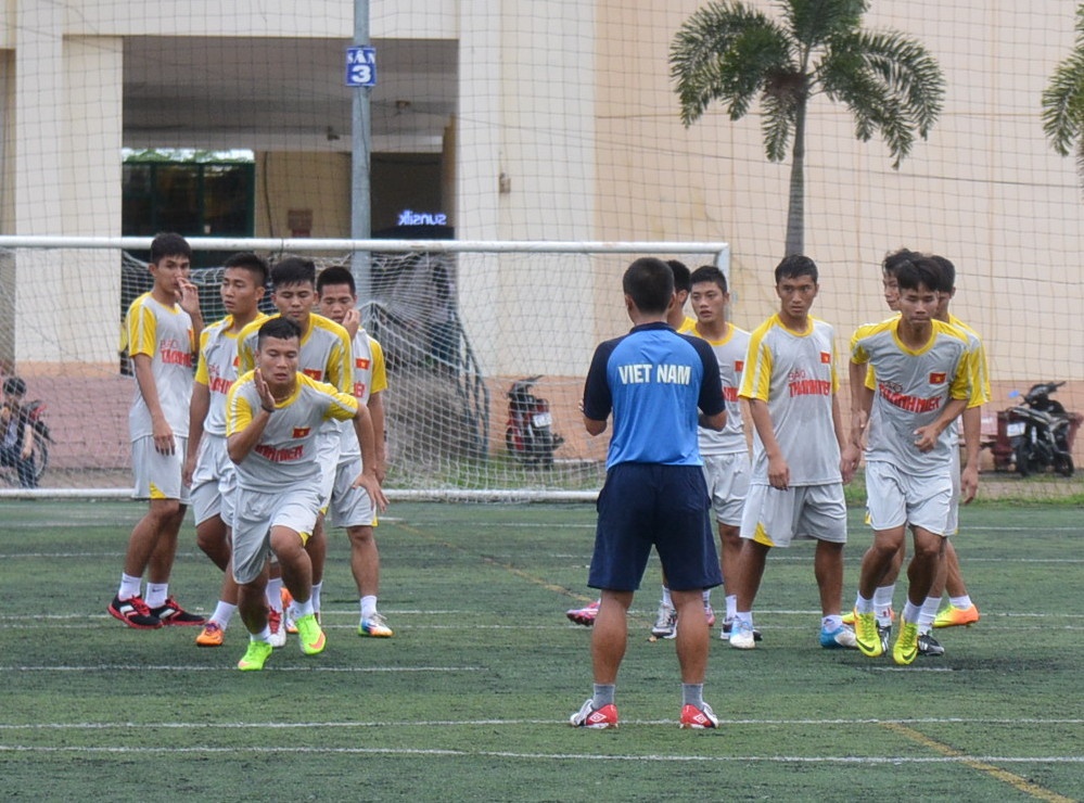 | HLV trưởng Phan Công Thìn cho biết, buổi tập chủ yếu cho các cầu thủ thả lỏng, kéo dài gần 1h đồng hồ. Ở trận đấu ngày mai, cầu thủ được tăng cường từ đội U19 Việt Nam Phan Văn Long sẽ không thể thi đấu do bị căng cơ. |