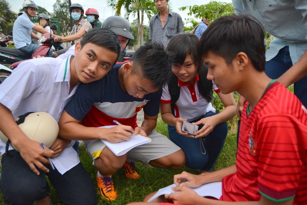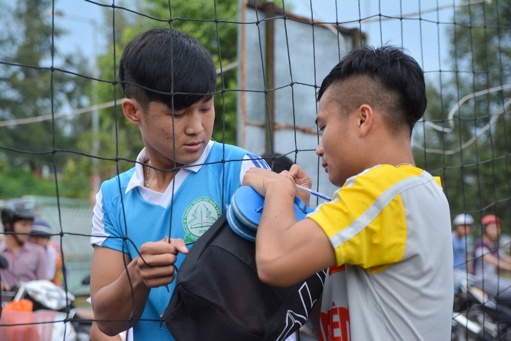 Hồ Tuấn Tài chiếm được tình cảm của các cổ động viên trẻ Cần Thơ khi chẳng ngại ngần ký tặng họ kể cả khi xe của đội đã lên đường về khách sạn.