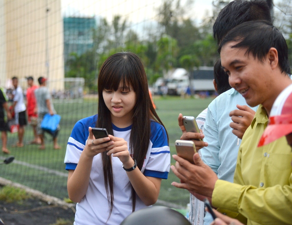 | Cổ động viên nữ này thích thú ghi lại hình ảnh Hồ Tuấn Tài tặng chữ ký cho các fan. |