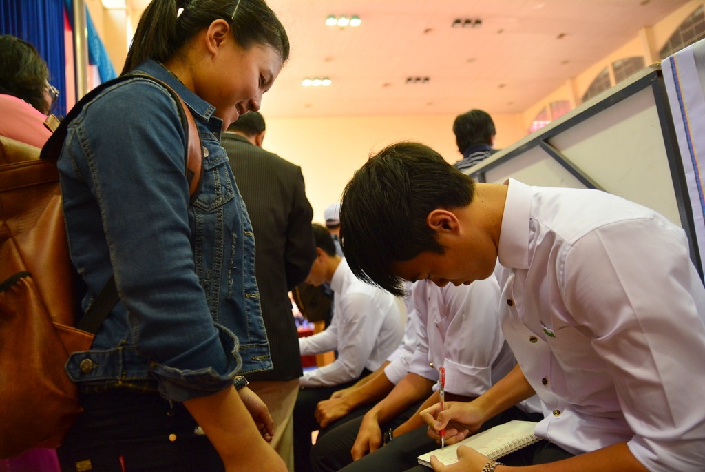 Fan chen lấn xin chữ ký Công Phượng trong ngày nhập học