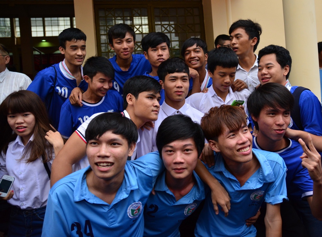 | Công Phượng rất được các sinh viên của trường hâm mộ, xin chụp hình chung. |