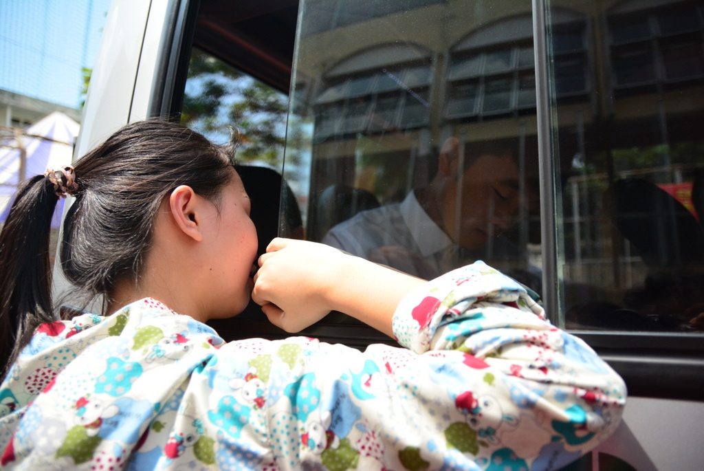 | Một fan nữ chèn qua cửa xe ô tô xin chữ ký của Xuân Trường. |