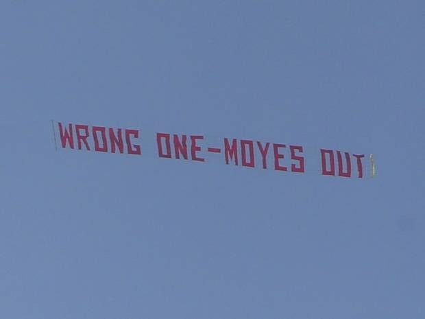| Fan M.U kêu gọi sa thải David Moyes hồi tháng 3. Ảnh: Daily Mail. |