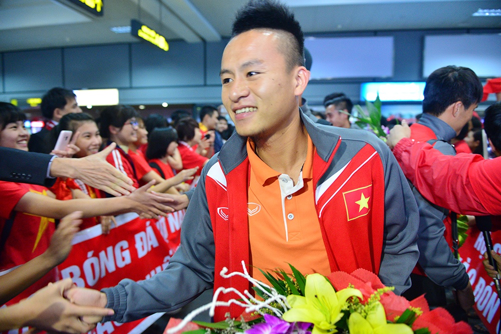 | Hậu vệ Quế Ngọc Hải chơi rất hay trong trận bán kết lượt đi. Anh nhận được sự chào đón của người hâm mộ. |