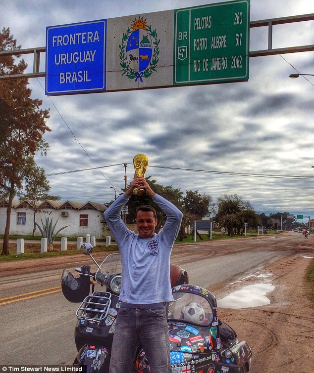 Anh Chris Hallett, 44 tuổi, một kỹ sư công nghệ người Anh đã quyết định tới Brazil cổ vũ cho Tam sư theo cách không giống ai. Thay vì đặt vé máy bay, anh Hallett lại nảy ra ý tưởng táo bạo, thực hiện một chuyến hành trình dài 24.000 km từ London tới Rio de Janeiro trên chiếc xe tay ga độc đáo của mình.