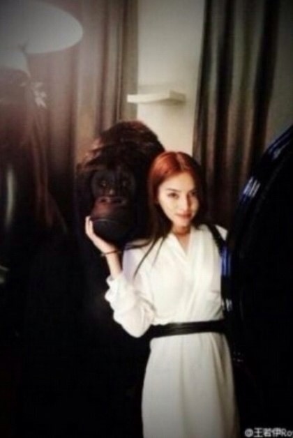 Sau chuyến đi Hàn Quốc hồi tháng 8, mới đây Vương Nhược Y - diễn viên, người mẫu Trung Quốc - đăng một tấm ảnh kỷ niệm lên blog. Đó là hình ảnh Nhược Y đứng cạnh một chú gorilla giả, to bằng người thật.