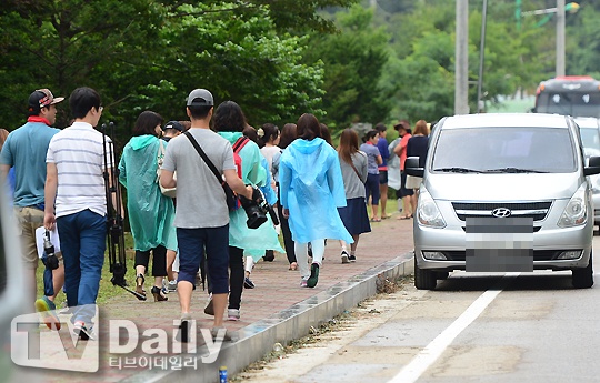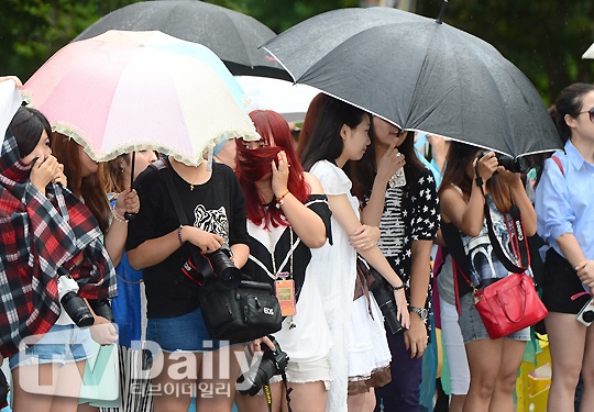 Hàng trăm fan đã đứng đợi Lee Teuk trong mưa nhưng không gặp được thần tượng.