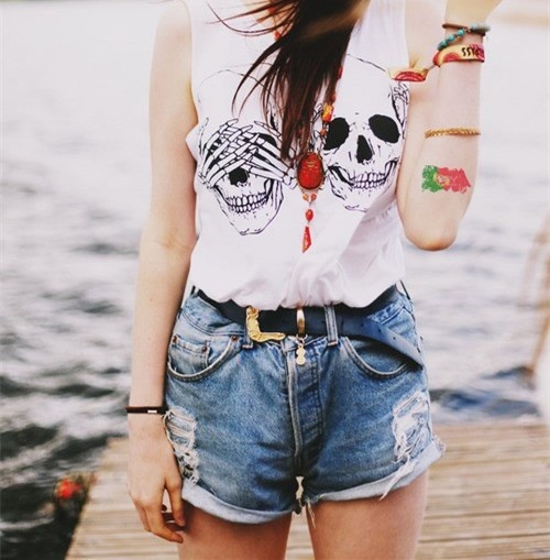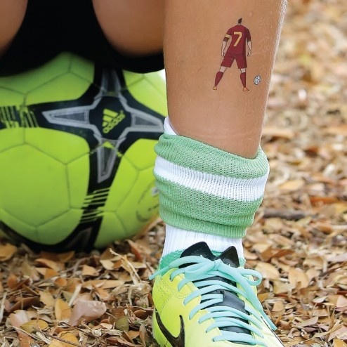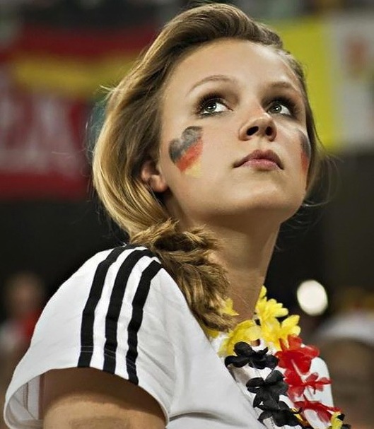 | Fan nữ tuyển Đức diện quần ngắn khoe hình xăm lá cờ cách điệu hình trái tim. |