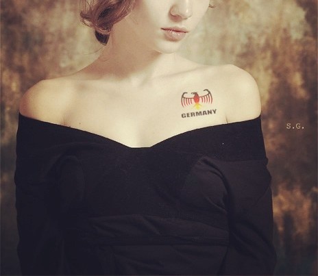 | Hình tattoo cờ nước Đức trên má của cô gái được xăm bằng mực làm thay đổi sắc tố da rất đẹp, khó tẩy xóa và khác hoàn toàn với những hình vẽ bằng sơn bình thường. |