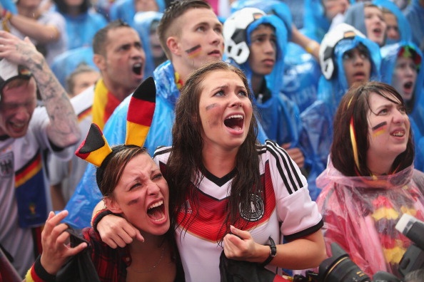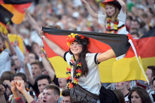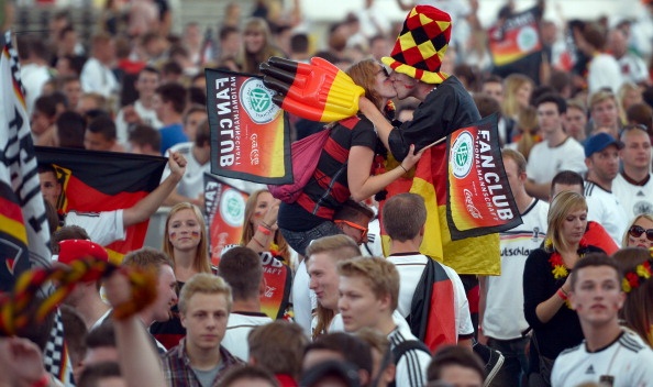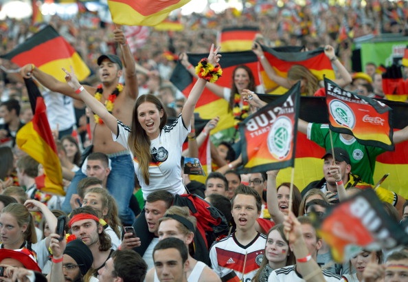 | Người hâm mộ Đức chia vui cùng thầy trò HLV Joachim Loew sau khi Đức đánh bại Mỹ với tỷ số 1-0. |