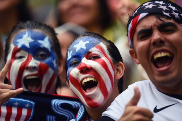 | Niềm vui của fan Mỹ có mặt tại sân Arena Pernambuco. |