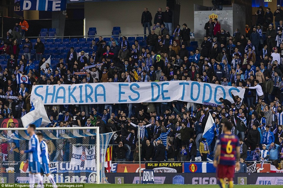 Các cổ động viên của Espanyol đã dùng Shakira để phản pháo Gerard Pique sau khi hậu vệ của Barcelona đăng đàn mỉa mai họ ở trận lượt đi cách đây một tuần.