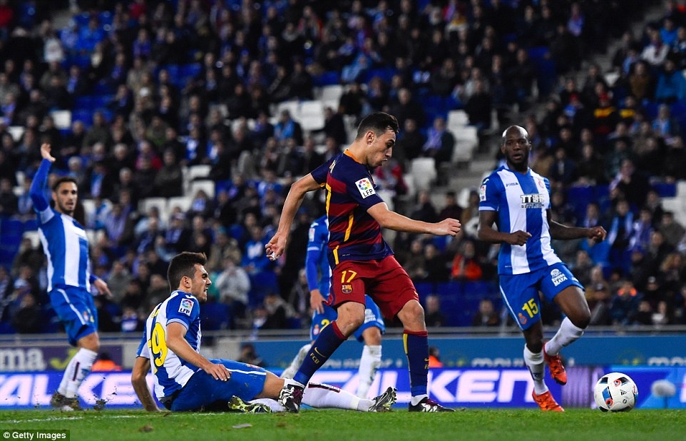 Trong trận lượt về tại Cornella de Llobregat, Messi luôn bị theo sát như hình với bóng. Bởi vậy, chân sút 28 tuổi không có nhiều cơ hội để dứt điểm.