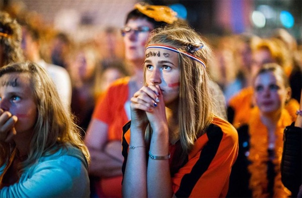 | Một fan nữ xinh đẹp của Hà Lan không khỏi ngỡ ngàng, thất vọng khi đội nhà để thua đầy kịch tính. |