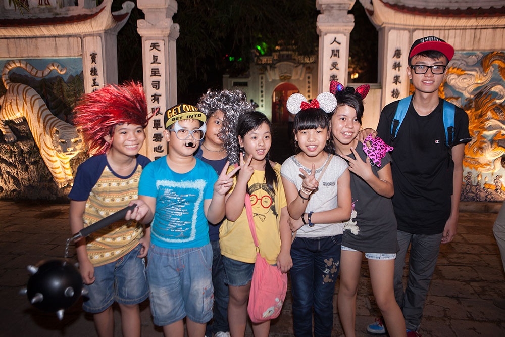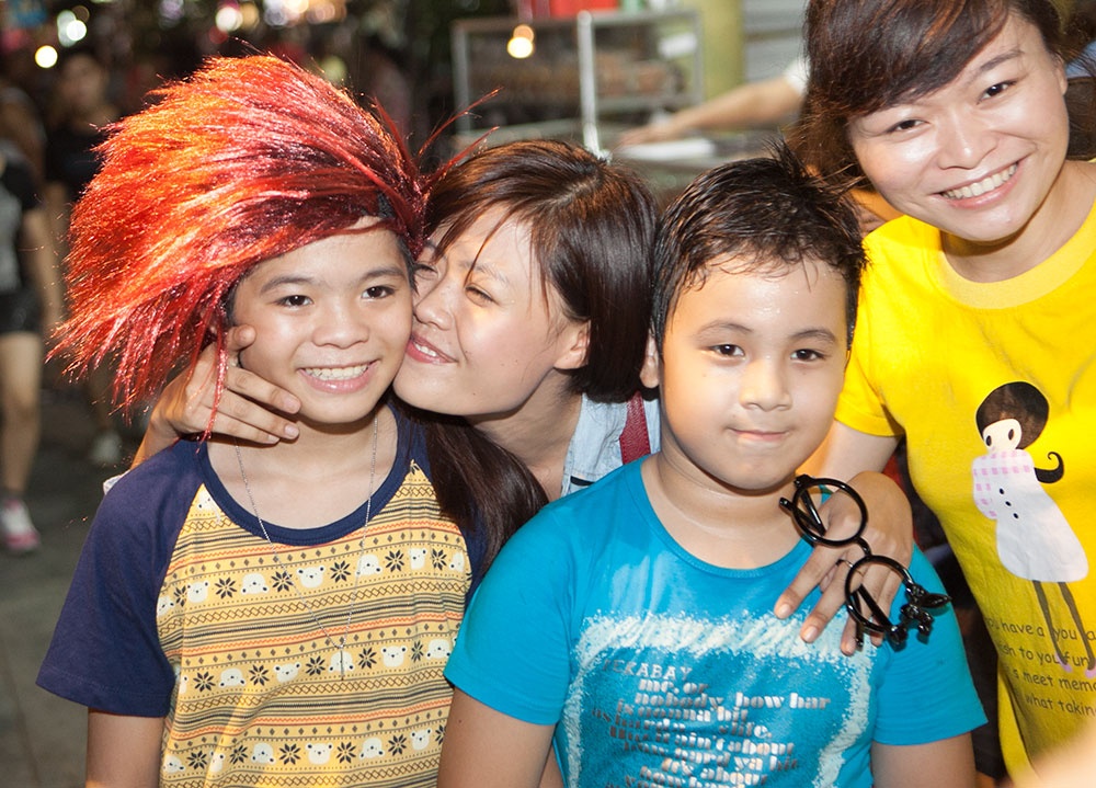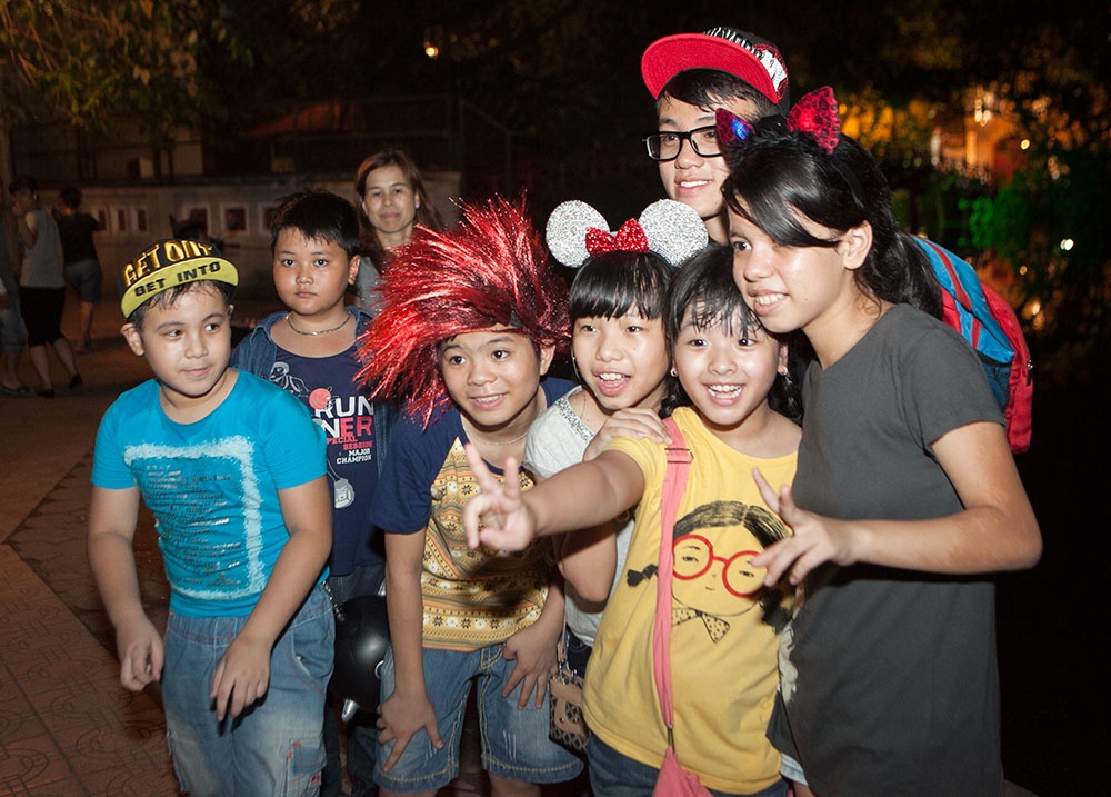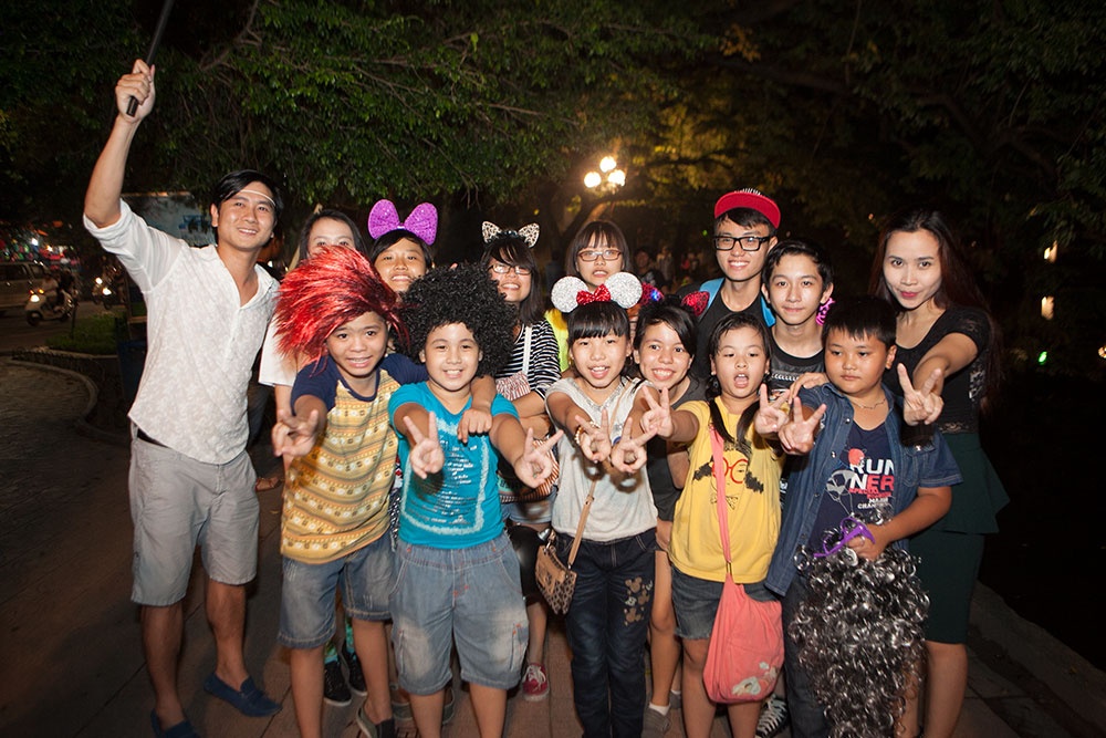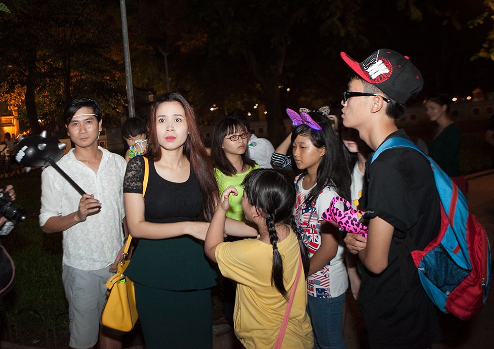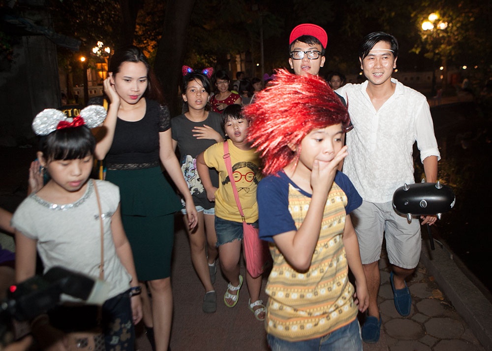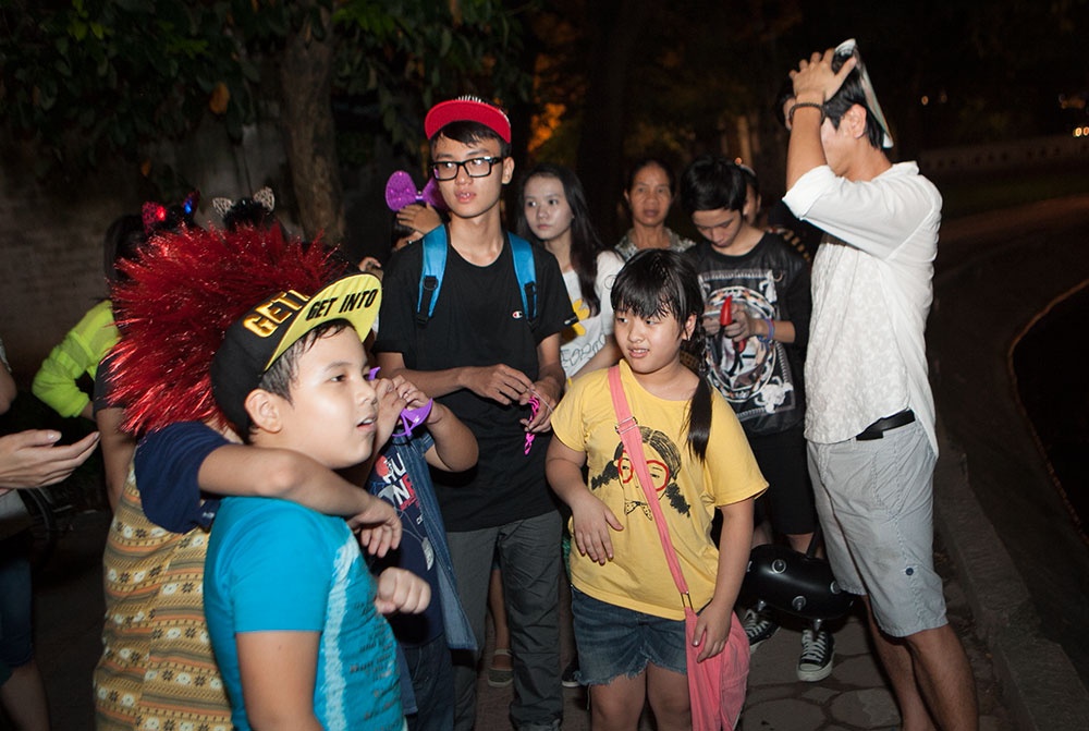 Tối 11/9, sau buổi luyện tập vất vả, vợ chồng Hồ Hoài Anh - Lưu Hương Giang quyết định dắt các nhóc tỳ đi dạo phố Hàng Mã xem đồ chơi trung thu và ăn kem Bờ Hồ để thư giãn đầu óc.