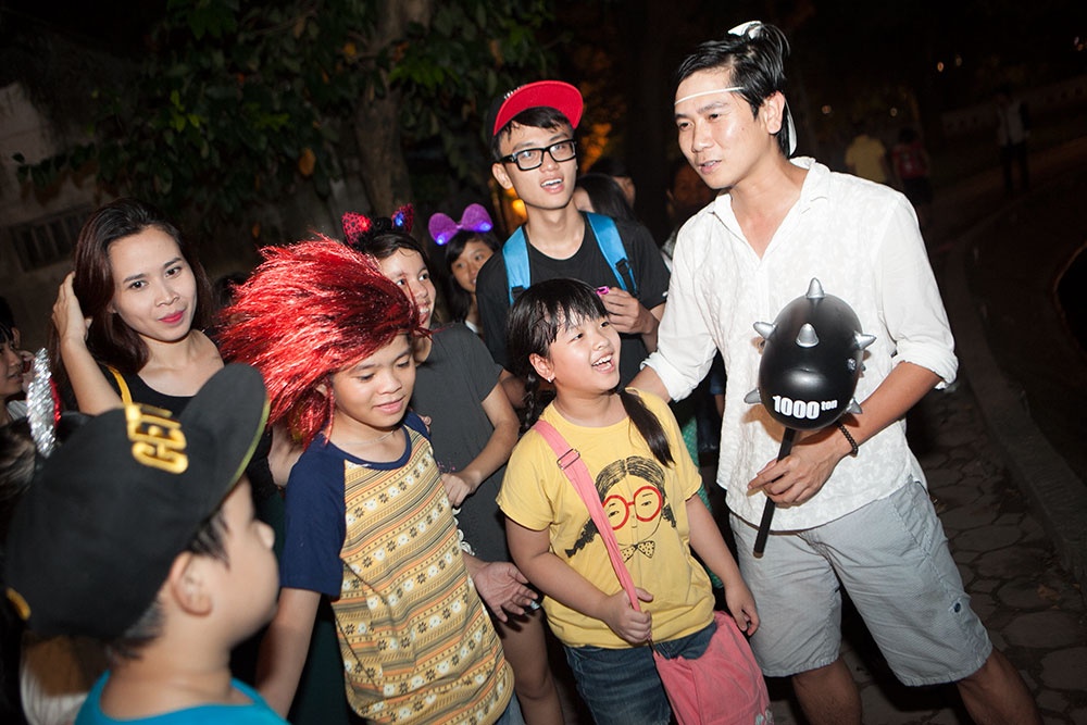 Từ Phúc Nguyên tới Quang Anh, Thu Hà, Trí Dũng..., nhóc nào cũng được mua một món đồ chơi theo yêu cầu. Thậm chí "anh cả" của quân đoàn tinh nghịch là nhạc sĩ Hồ Hoài Anh cũng sắm được một chiếc búa cao su để chơi chung.