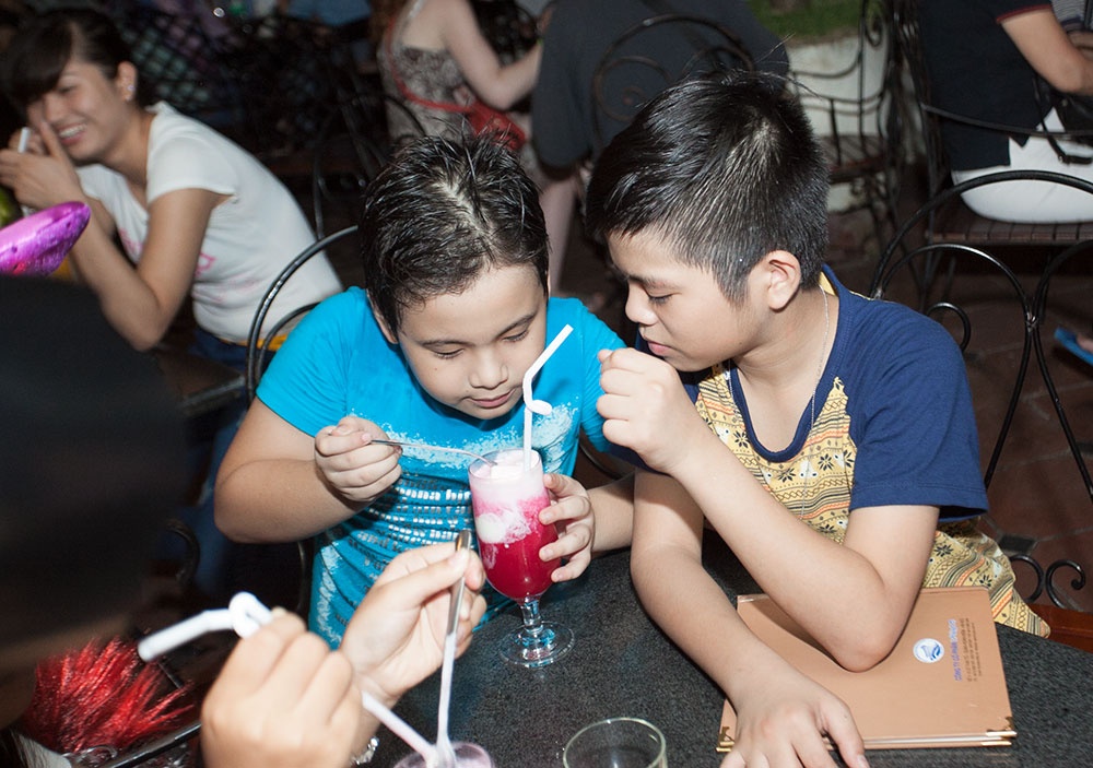 Mỗi cậu nhóc có một món đồ uống riêng nhưng nhóc nào cũng đòi... ăn thử của nhau để cùng nếm những hương vị mới lạ.