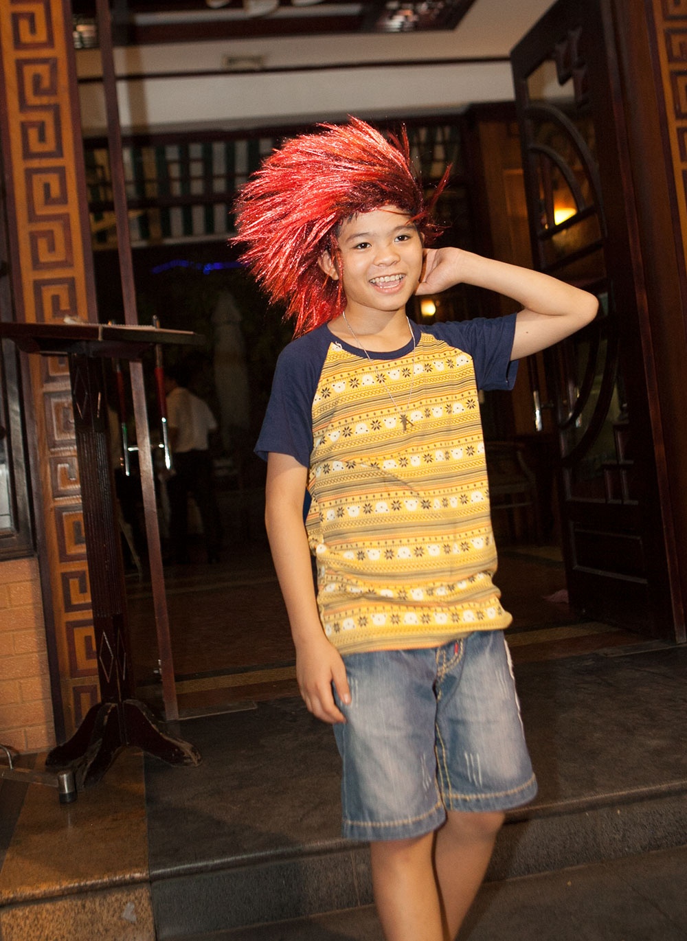 Hồng Khanh nheo mắt tạo dáng xì tin. Mẹ cô nhóc - NSƯT Chiều Xuân - chính là người đứng mũi chịu sào cho đêm nhạc nhiều ý nghĩa tối nay.