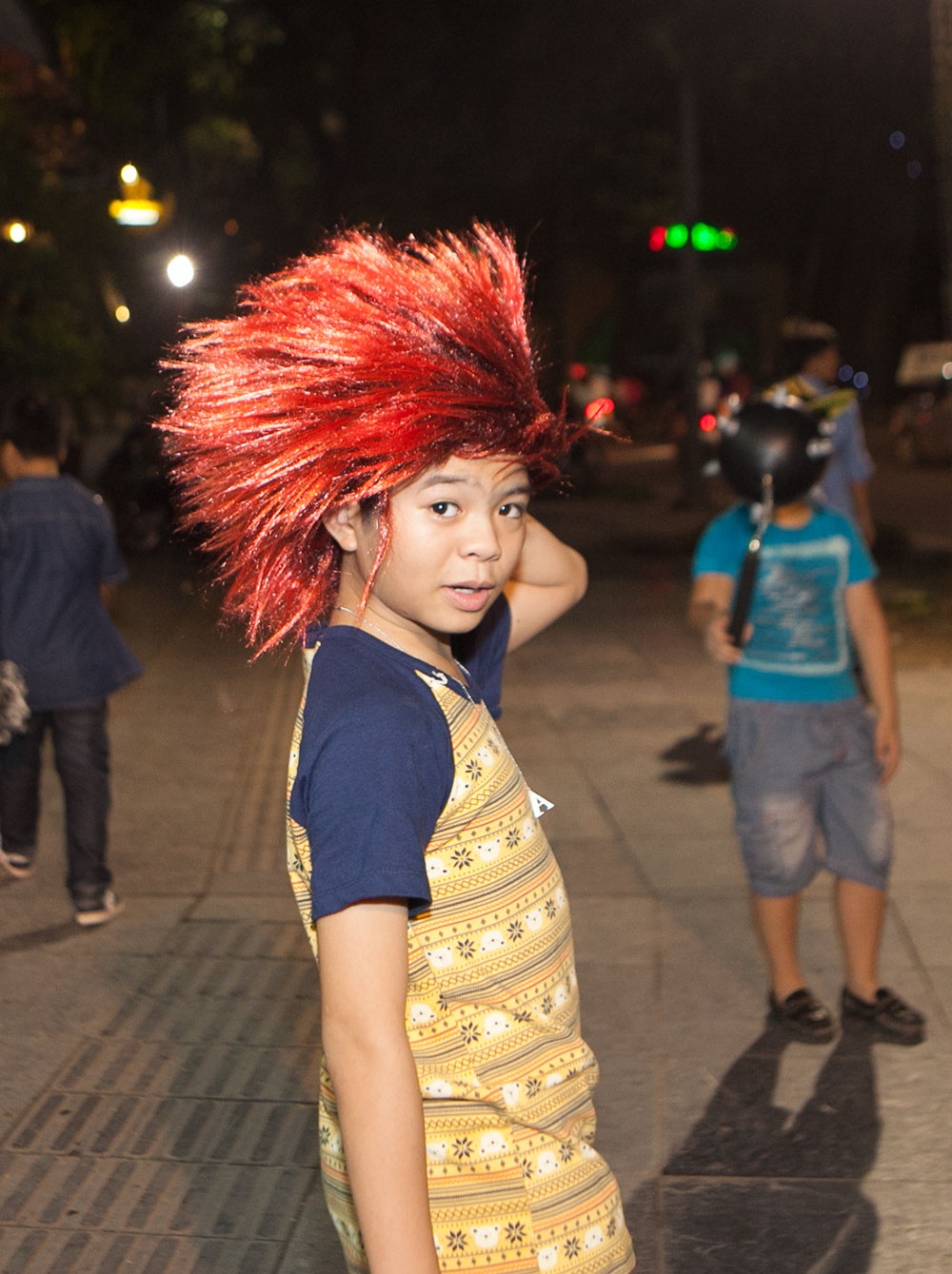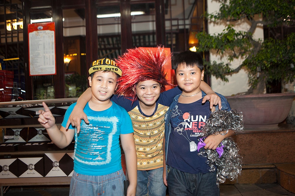 Các cậu nhóc rất thích thú với những món đồ chơi mới được mua nên người thì đội lên đầu, người lại ôm chặt không chịu rời tay.