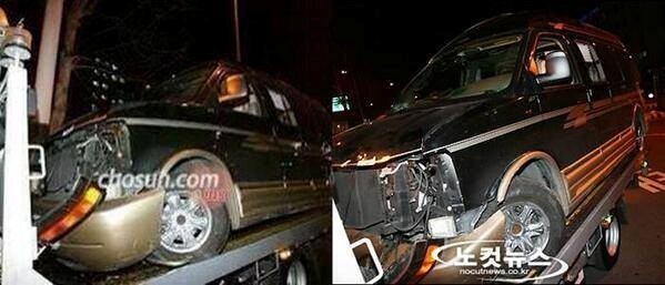 | Hình ảnh chiếc xe được cho là trong tai nạn của cha và ông bà Lee Teuk. |