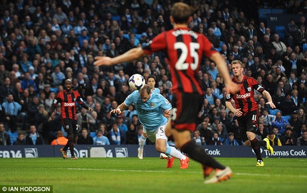 Phút 36, Martin Demichelis - một cầu thủ Argentina khác đệm bóng nới rộng tỷ số lên 3-1 cho Man City.