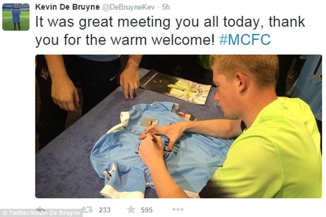 Trên trang cá nhân Twitter, Kevin de Bruyne gửi lời cảm ơn đến người hâm mộ trước tình cảm chào đón nồng nhiệt ở Man City. Anh nhiệt tình ký tặng cổ động viên Man xanh.