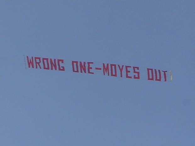 | Một nhóm fan M.U từng có hành động tương tự khi kêu gọi sa thải HLV David Moyes. Ảnh: Daily Mail. |
