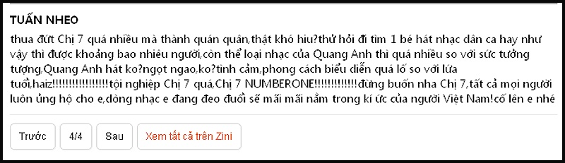 | Quang Anh đăng quang chứ không phải Phương Mỹ Chi là điều các fan của "chị Bảy" khó chấp nhận nổi. |