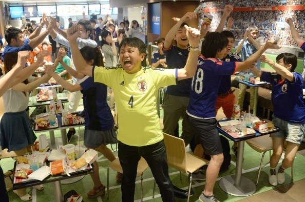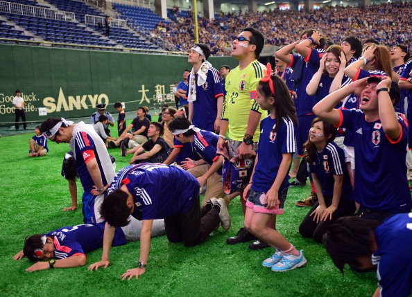 | Người hâm mộ Nhật Bản đặc biệt phấn khích trước khi đội tuyển xứ sở mặt trời mọc bước vào cuộc so tài với Bờ Biển Ngà ở loạt trận ra quân. Họ tập trung cổ vũ đội bóng con cưng ở các sân vận động lớn trên khắp đất nước như SVĐ Noevir (Kobe), Tokyo Dome... |