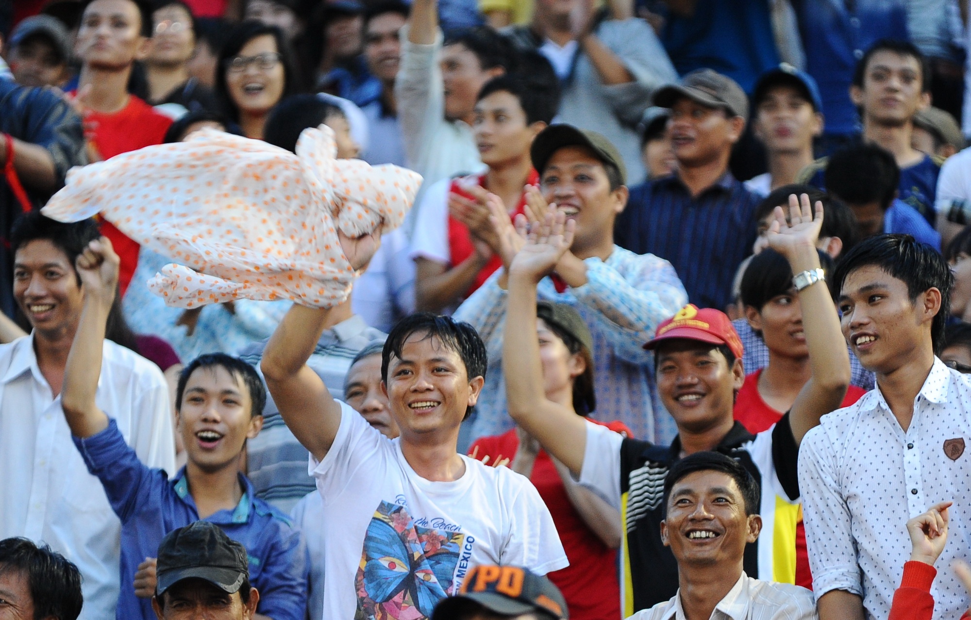 | Trời đổ mưa lớn từ cuối hiệp 1 tới đầu hiệp 2 trận tranh huy chương đồng giữa U21 Việt Nam gặp U21 Malaysia nhưng người hâm mộ quyết không rời vị trí để cổ vũ hết mình cho đội nhà. Rất nhiều fan nữ có mặt trên khán đài cổ vũ thầy trò HLV Phan Công Thìn |