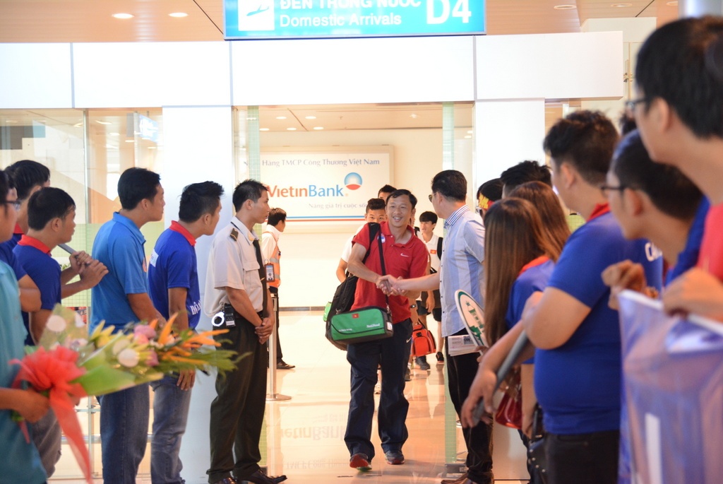| Hội cổ động viên Cần Thơ và hội cổ động viên Việt Nam (VFS) đã đến từ rất sớm để chào đón U19 HAGL. Do máy bay của bầu Đức chỉ chở tối đa được 12 người nên toàn đội phải chia làm 2 tốp để bay đến Cần Thơ. |
