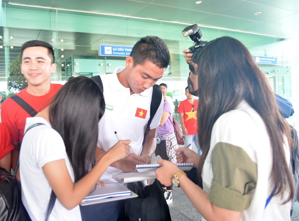 Tuyển thủ U19 Việt Nam vừa được bầu vào top 40 cầu thủ triển vọng thế giới được các cổ động viên Cần Thơ săn đón đặc biệt khi vừa đến sân bay sáng nay 19/10 cùng đội U19 HAGL.
