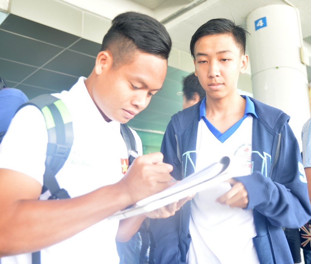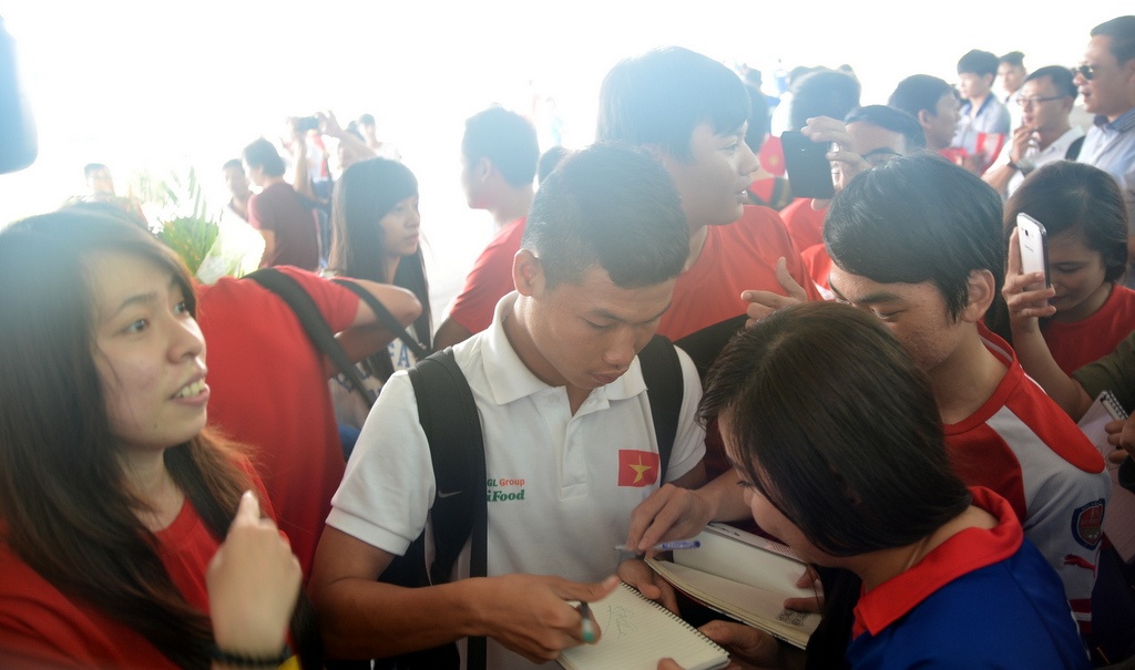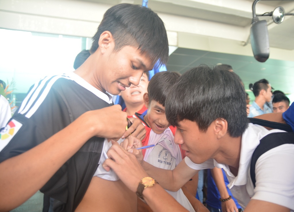 Nhưng được săn đón nhất là Thanh Hậu, cầu thủ vừa được tờ Guardian (Anh) bầu là 1 trong 40 sao triển vọng của thế giới. Anh rất vui vẻ khi 1 fan vạch áo xin chữ ký của mình.