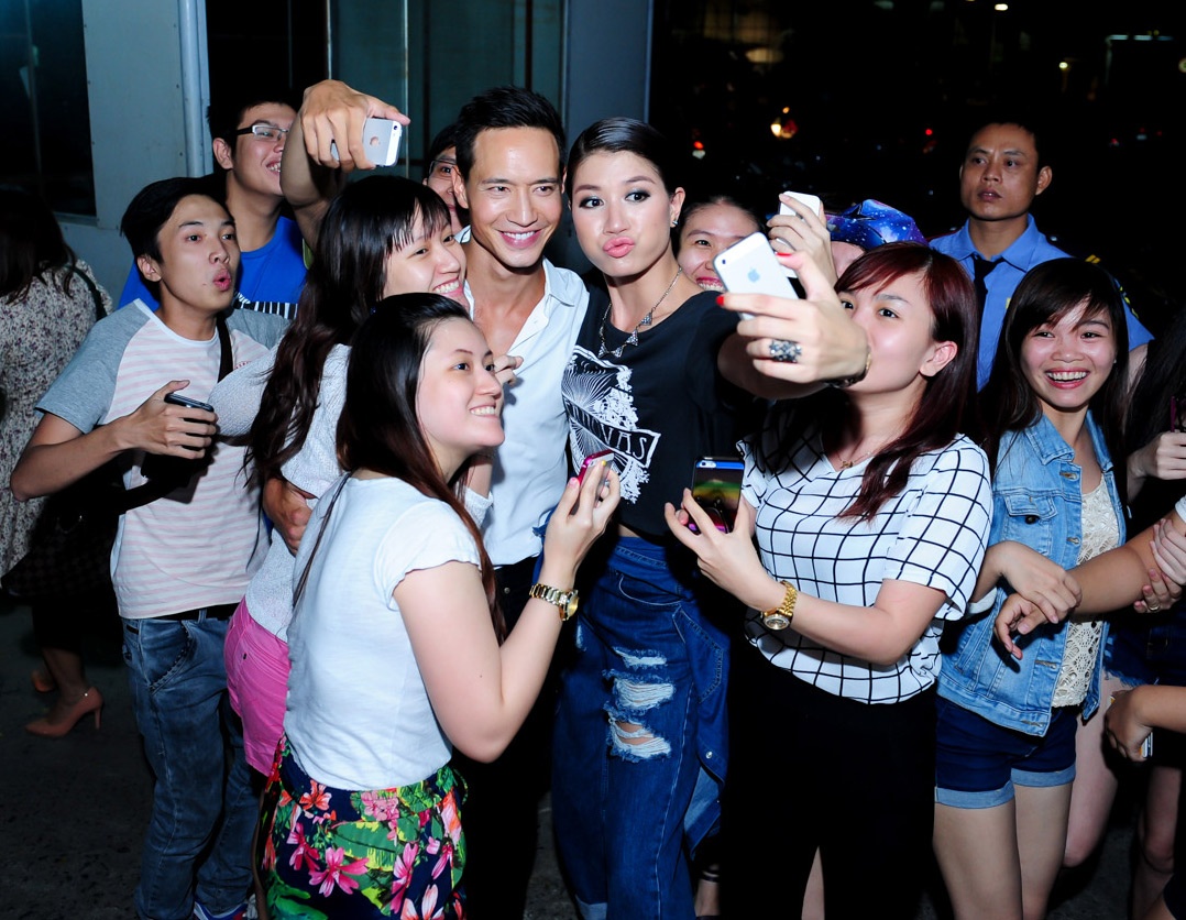 | Kim Lý và Trương Ngọc Ánh trong vòng vây người hâm mộ. Nhiều khán giả mong muốn họ trở thành một cặp tình nhân ngoài đời. |